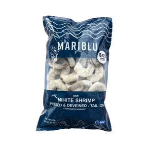 Mariblu 16/20 Tail-On Shrimp (P&D) delivers a clean, chef-ready bite without the extras. With 16–20 shrimp per pound, you get a consistent, premium size that plates beautifully. These shrimp are raw, peeled and deveined with the tail left on—ideal for scampi, skewers, cocktails, and fast sauté pickups. 100% phosphate-free and BAP 4-Star certified, packed in a convenient 2 lb bag and available exclusively through What Chefs Want.